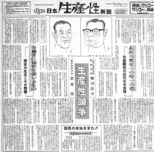 新聞では十数回にわたり、「生産性論争」の場を提供。労使中立各界の代表や読者も参加して賛成・反対の意見を掲載した。創刊から1年後。57年7月15日付で、郷司は1年前の「確信」について次のように記した。