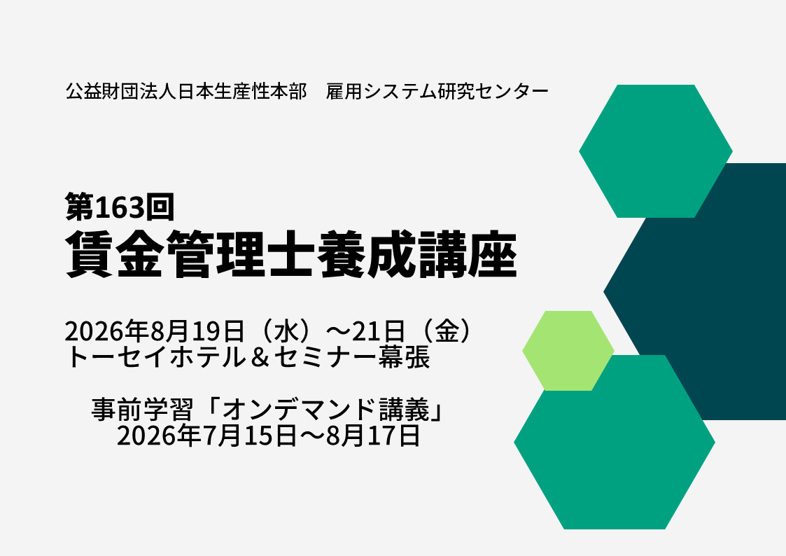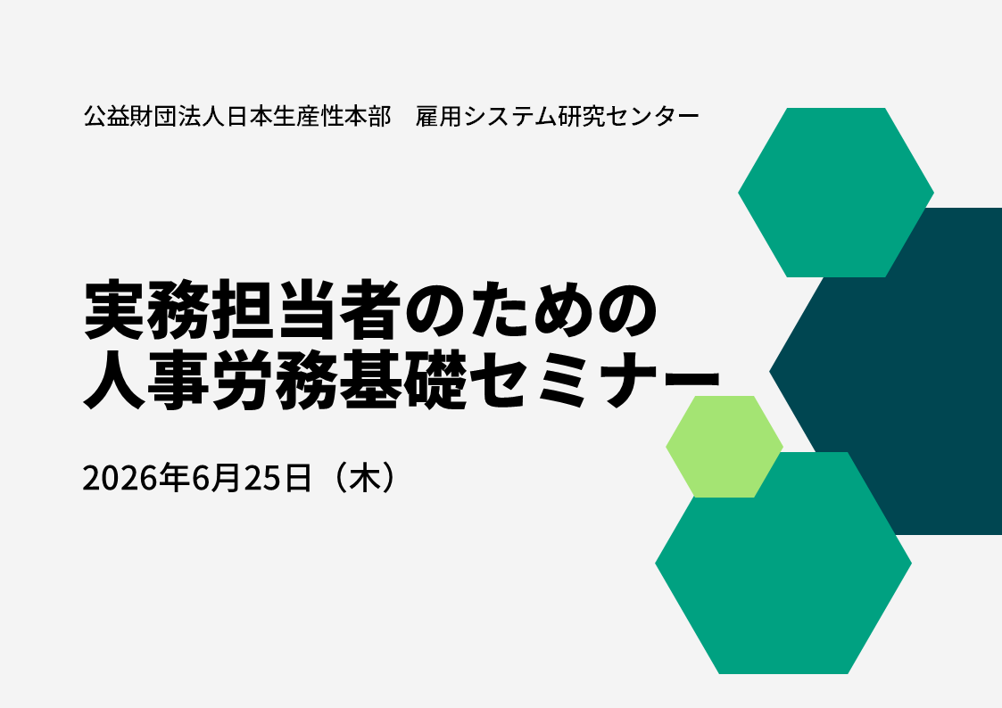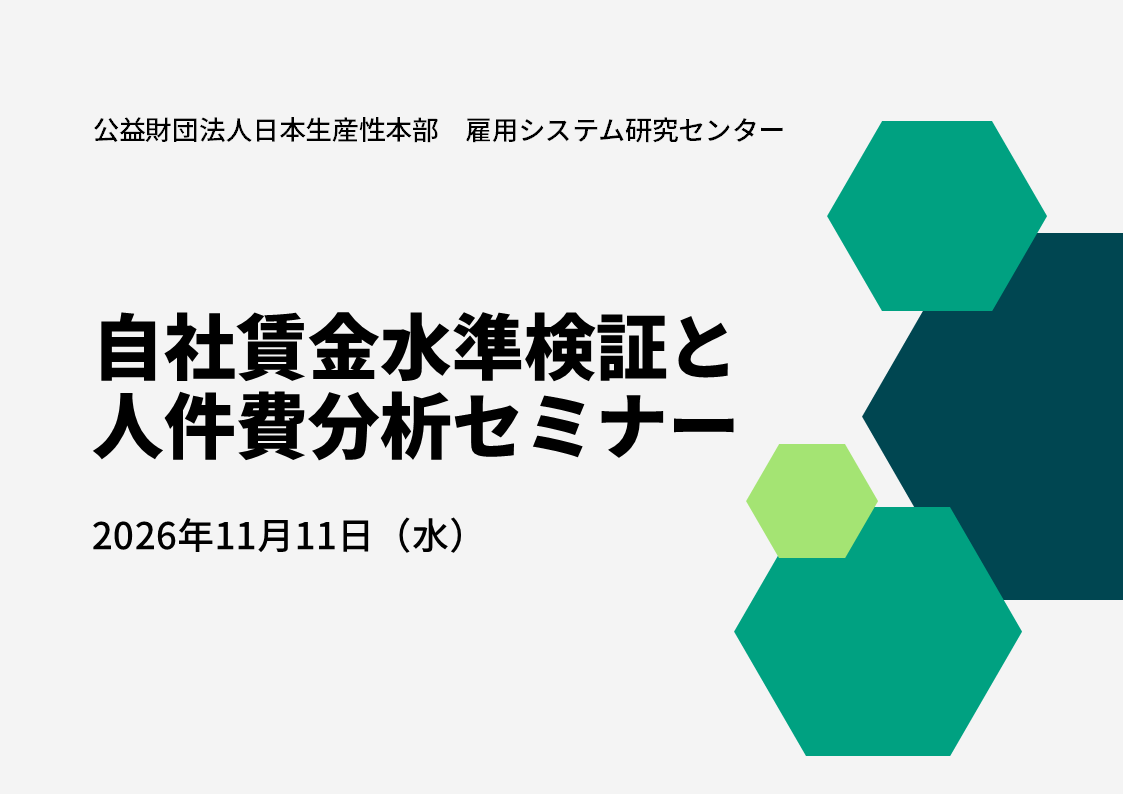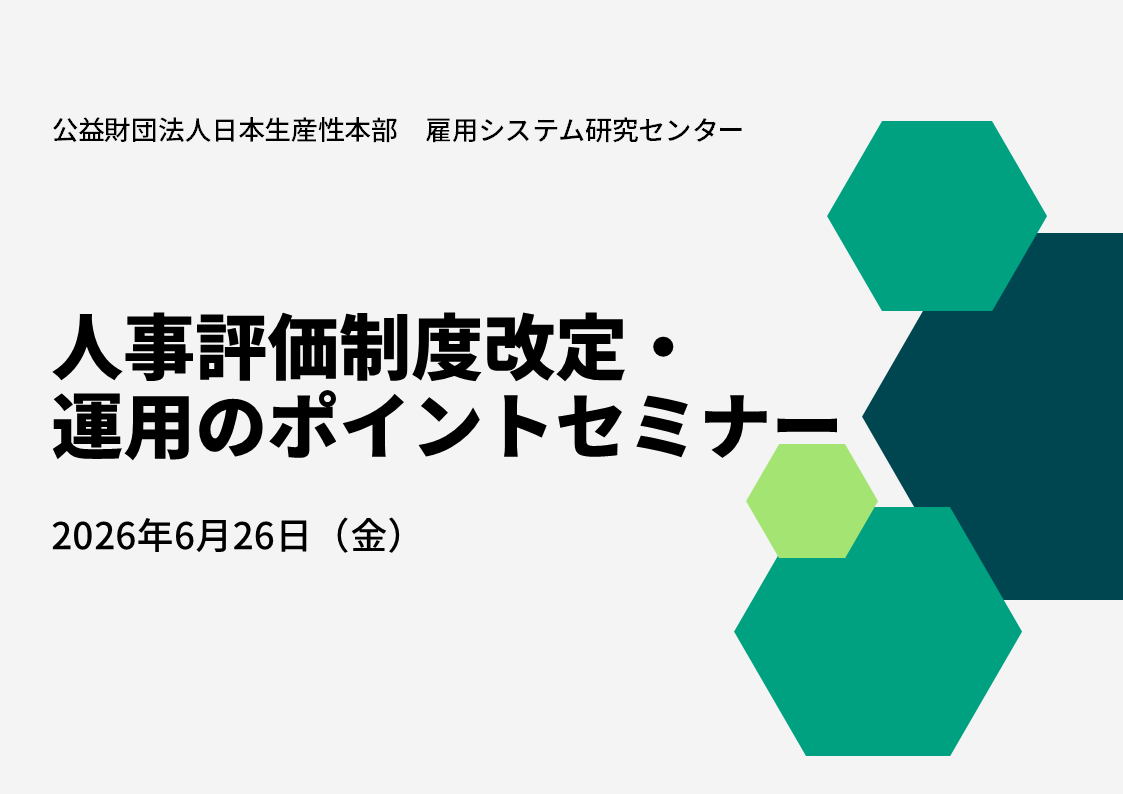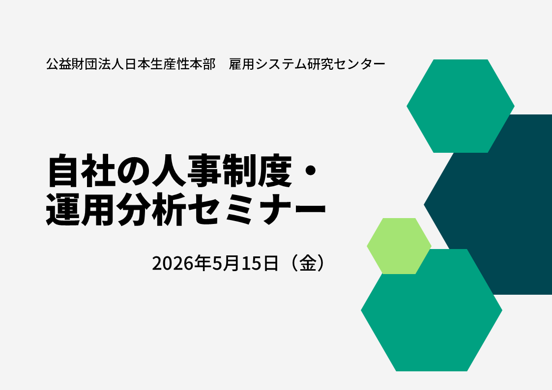 日本生産性本部は、今日の人事・賃金・評価処遇システムが直面する課題解決の方策と実務習得をねらいとした研修・セミナーを開催しています。また、「日本的雇用・人事の変容に関する調査」などの調査研究や、個別企業のニーズに対応したコンサルティングも実施しています。