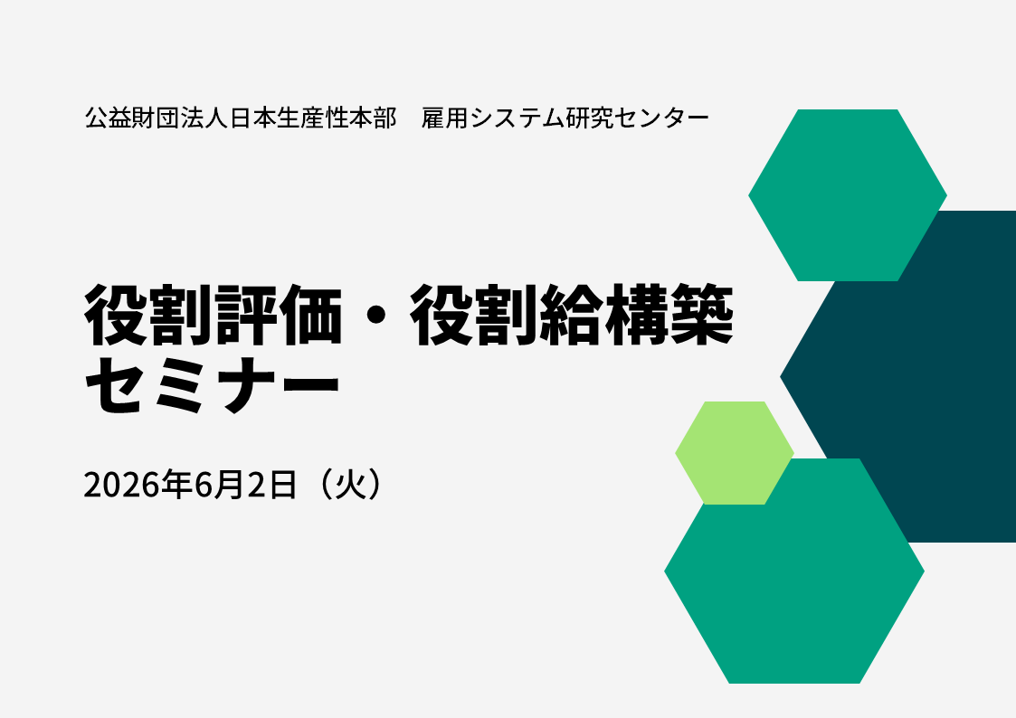日本生産性本部は、人事という企業の「中枢」機能強化にむけ、人事・労務の課題解決・目標到達を支援しています。50年以上にわたる調査研究からの知見と多くのコンサルティング実績から得たノウハウを活用した、多様な研修・セミナーを用意しています。