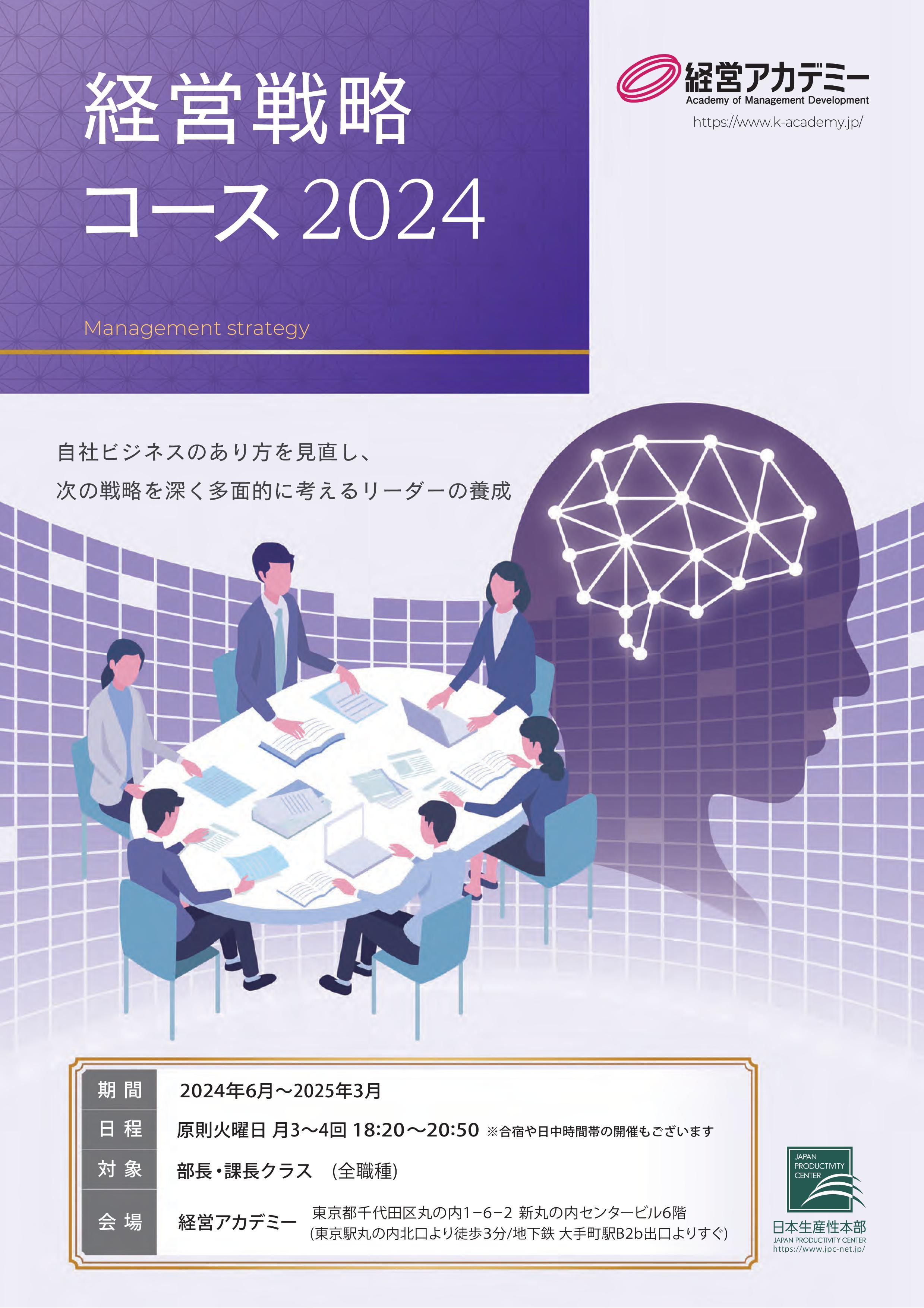 日本生産性本部は、社会・経済環境の変化に対応できるスピードと柔軟性を持つ、次世代リーダー・経営人材の育成に重点的に取り組んでいます。次代のリーダーには、事象の分析と過去の定石から導き出される、「Science(サイエンス)」による意思決定の能力はもちろんのこと、経営者自身の深い思慮と高次の実践知に裏打ちされた、感性、洞察力、綜合力といった、「Art(アート)」ともいえる経営能力が強く求められています。当本部は、「Science」と「Art」それぞれの能力を養成するプログラムをご用意しています。